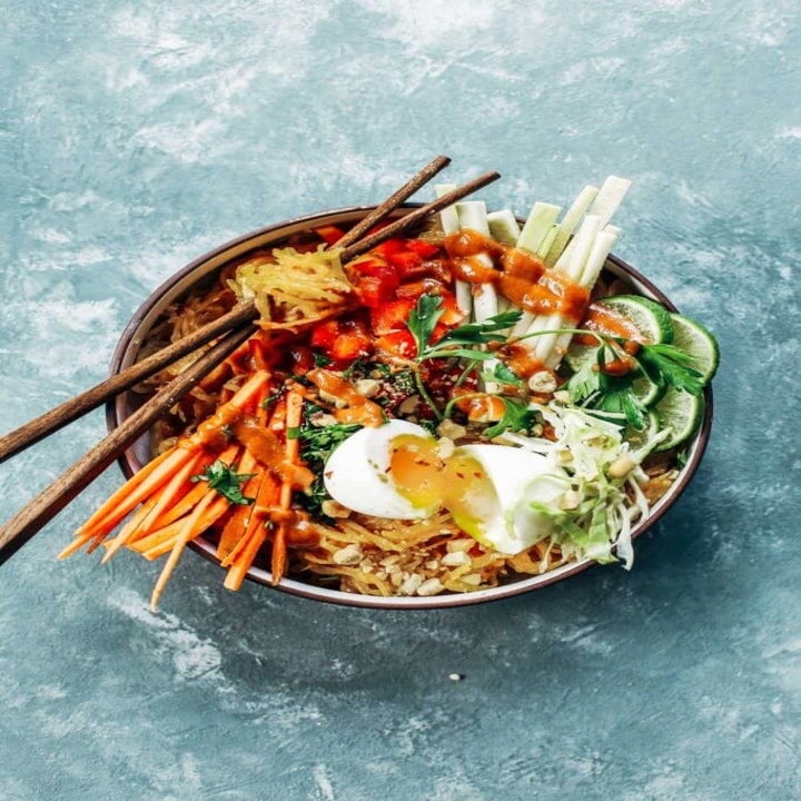 Zoodles are great and all, but spaghetti squash is as close to the carb-y stuff that a vegetable will actually get. Here, grated ginger, red curry paste, and fish sauce transform it into the best dang garlic "noodle" dish you could whip up using just vegetables.